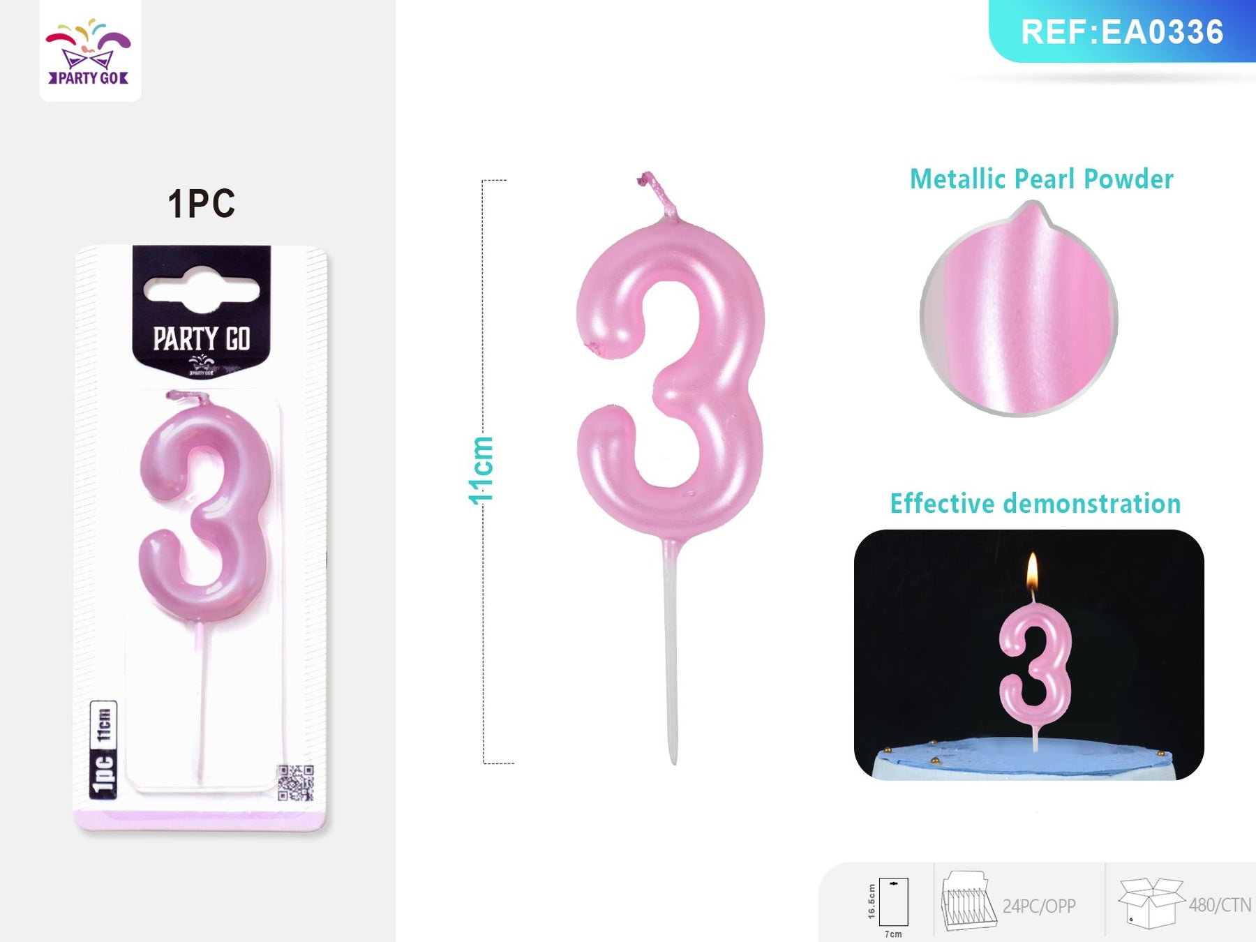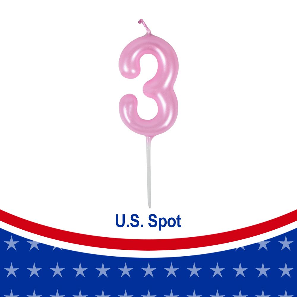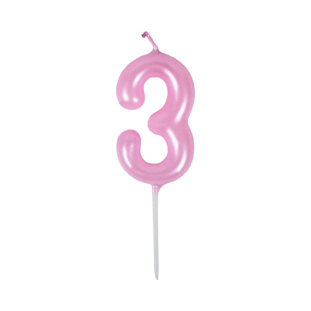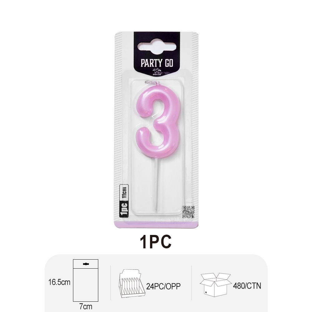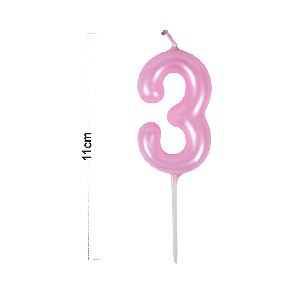 Macaron Pink Number 3 Candles,Pink Birthday Candles,Macaron Happy Birthday Candle for Cake 11cm 24pcs