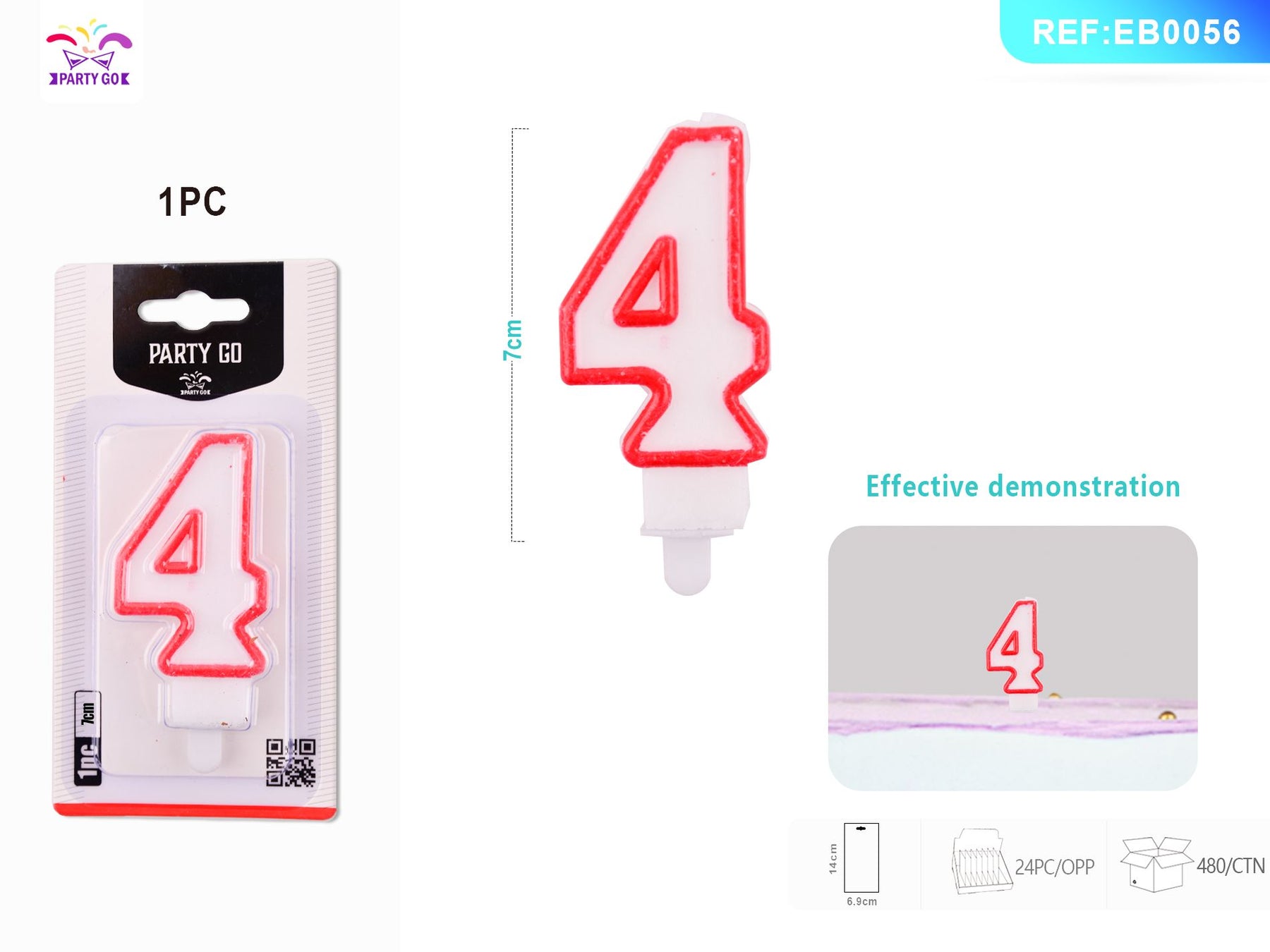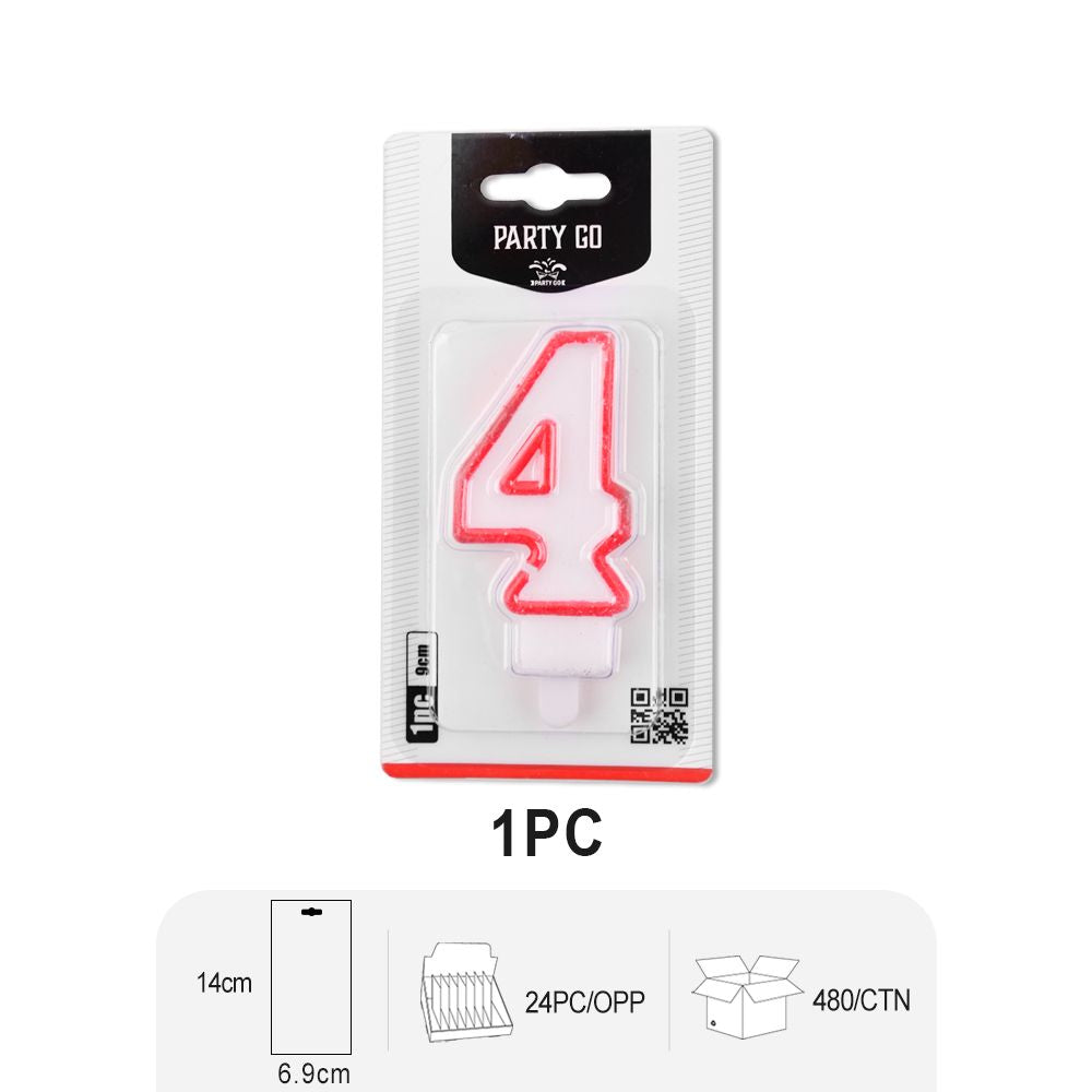 EYE-CATCHING DESIGN: Our beautifully designed Number "4" candle features a bold red coloration with shimmering white accents, ensuring it stands out and captures attention as the centerpiece on your cake or other birthday treats.QUALITY MATERIALS: Crafted from premium wax, our deluxe birthday candles are non-toxic, eco-friendly, and burn with a clean and steady flame. Party with the confidence that you're putting your loved ones' safety first!EASY TO USE: Designed with convenience in mind, our Number  White & Red Deluxe Birthday Candle comes with a sturdy, elongated plastic holder that easily inserts into your cake, ensuring it stays in place during your celebration.PERFECT PARTY ACCESSORY: Looking for a thoughtful gift or the ideal way to jazz up your event? Our Number  Deluxe Birthday Candle is a fantastic choice for parents, event planners, or anyone who wants to elevate their gathering with an extra touch of festivity!